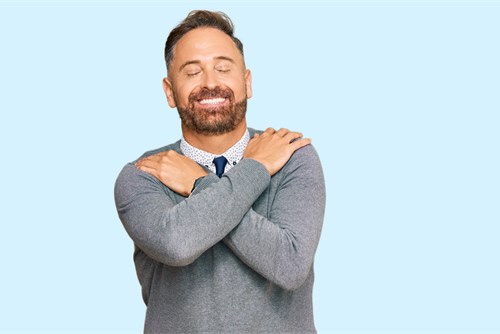 Meistens reicht es aber auch schon, einfach nur die Nähe eines geliebten Menschen zu genießen. Aber was, wenn gerade niemand für eine Umarmung zur Verfügung steht? Unseren Oxytocin-Spiegel können wir zum Beispiel auch erhöhen, indem wir langsam und genussvoll essen – oder uns selbst umarmen. Das mag im ersten Moment vielleicht erstmal skurril klingen, aber sobald wir uns selbst in die Arme schließen, schütten wir ebenfalls das Kuschelhormon aus.